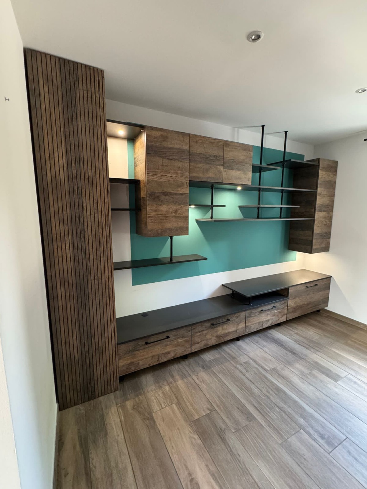 Espace tv et nombreux rangements.